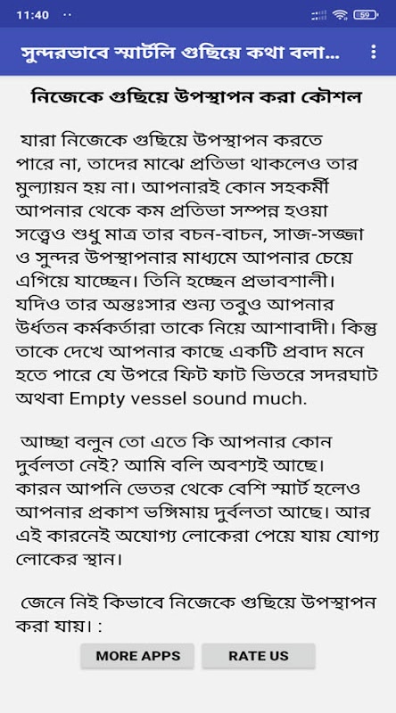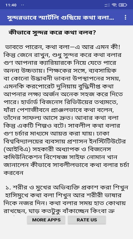 তাই এই এপম এর মাধ্যমে আপনাদের জানাতে চেস্টা করেছি কি ভাবে আপনারা সুন্দরভাবে স্মার্টলি গুছিয়ে কথা বলতে পারেন। আশা করছি আপনাদের অনেক উপকারে আসবে।