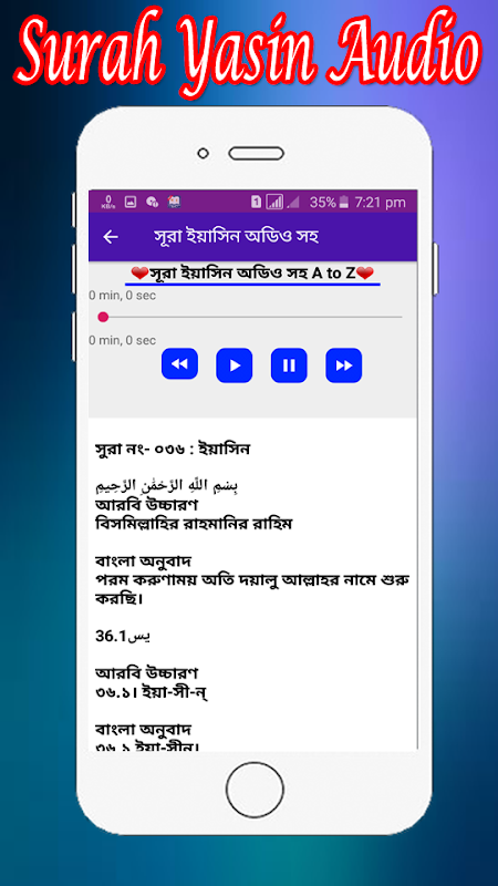 পবিত্র কুরআনের সূরা আল ইয়াসিন অডিও বাংলা অনুবাদ সহ আমাদের অ্যাপটি তৈরি করা হয়েছে