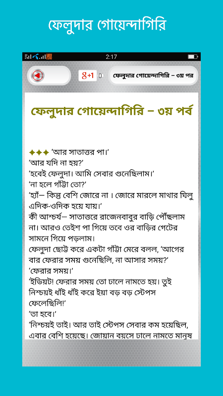 Untuk pecinta cerita detektif dangkal kami membuat aplikasi mobile yang mengandung hampir semua cerita detektif terbaik bersama-sama. Seperti: seri feluda dalam versi bengali, Masud rana, Byomkesh Bakshi, goyenda timah. Jadi teman-teman download dan nikmati aplikasi kita.