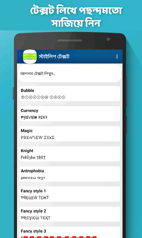 স্টাইলিশ টেক্সট এপটি ইউজ করে আপনি সেই কাজটি অনেক সহজেই করতে পারবেন।