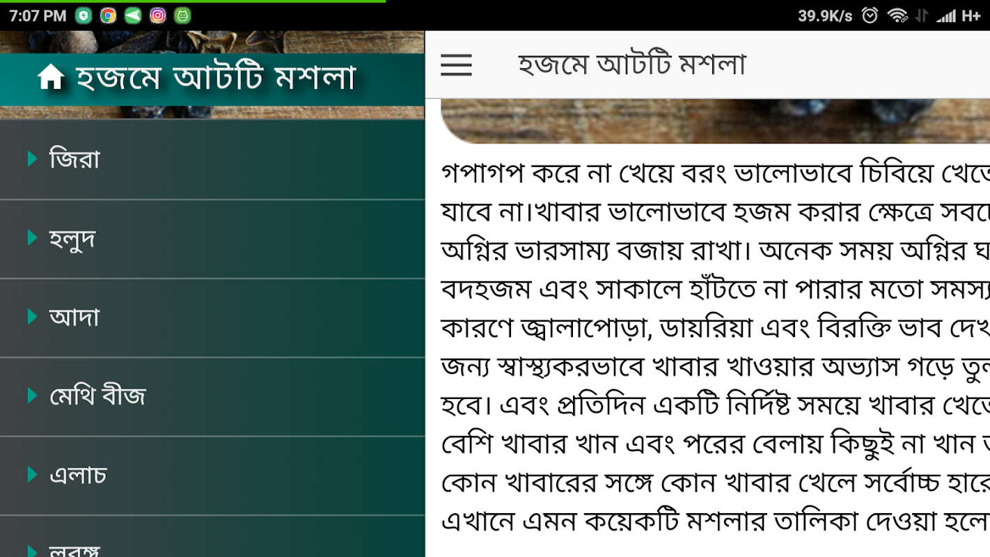 গপাগপ করে না খেয়ে বরং ভালোভাবে চিবিয়ে খেতে হবে। খাবার খাওয়ায় অনিয়ম করা যাবে না।খাবার ভালোভাবে হজম করার ক্ষেত্রে সবচেয়ে গুরুত্বপূর্ণ হলো হজম প্রক্রিয়ায় অগ্নির ভারসাম্য বজায় রাখা। অনেক সময় অগ্নির ঘাটতির ফলে গ্যাস, কোষ্ঠকাঠিন্য, বদহজম এবং সাকালে হাঁটতে না পারার মতো সমস্যা দেখা দেয়। আবার অগ্নির বাহুল্যের কারণে জ্বালাপোড়া, ডায়রিয়া এবং বিরক্তি ভাব দেখা দেয়। অগ্নির ভারসাম্য বজায় রাখার জন্য স্বাস্থ্যকরভাবে খাবার খাওয়ার অভ্যাস গড়ে তুলতে হবে। এবং সঠিক খাবারটি খেতে হবে। এবং প্রতিদিন একটি নির্দিষ্ট সময়ে খাবার খেতে হবে। আপনি যদি একবেলায় অনেক বেশি খাবার খান এবং পরের বেলায় কিছুই না খান তাহলে অগ্নির ভারসাম্য নষ্ট হয়। আর কোন খাবারের সঙ্গে কোন খাবার খেলে সর্বোচ্চ হারে পুষ্টি শোষণ হবে তাও জানতে হবে। এখানে এমন কয়েকটি মশলার তালিকা দেওয়া হলো যা এই অগ্নি বা হজম শক্তি বাড়ায়।