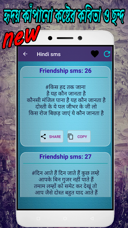 এবং এখানে যে কবিতা ও ছন্দ গুলো আছে আপনি আপনার সকল Frinend দের সাথে সেয়ার কারতে পারবেন ।