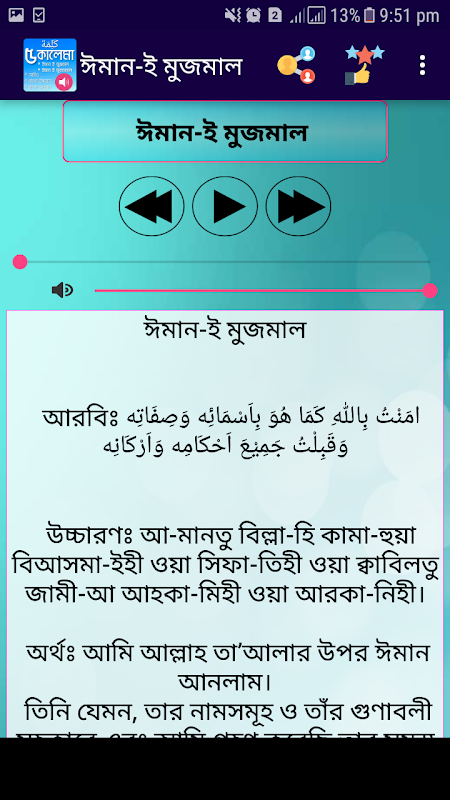 Bahasa Arab, pengucapan Bengali dan terjemahan semua kata termasuk versi audio yang jelas lengkap.