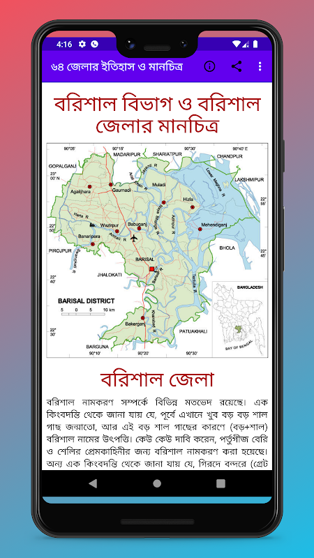 আমাদের ৬৪ জেলার সম্পূর্ণ ইতিহাস ও মানচিত্র এ্যাপে যা থকছে –