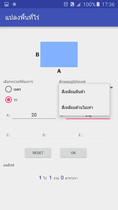 • คำนวณที่ดินไร่ คำนวณพื้นที่ไร่ screenshot 2