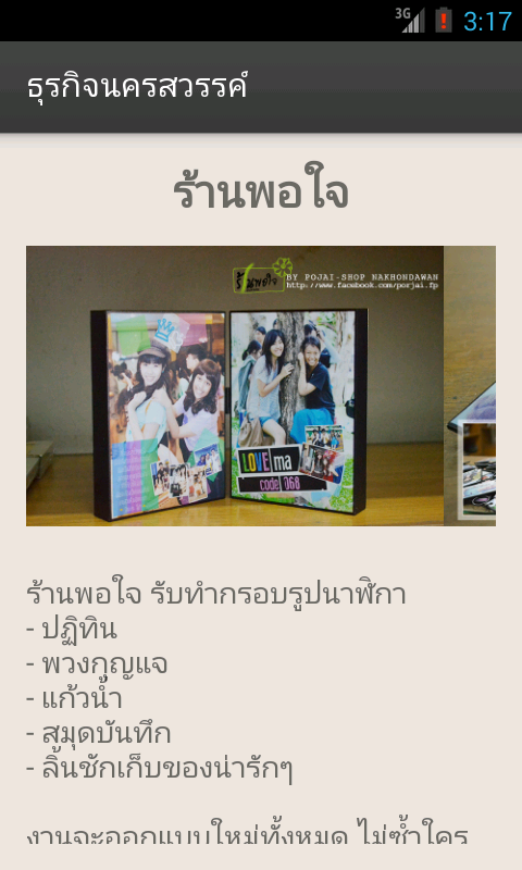 รวม ธุรกิจ ร้านค้า อาชีพอิสระ ประกาศต่าง ๆ ภายในจังหวัดนครสวรรค์ ไว้ในมือถือให้สามารถค้นหาได้ง่าย โดยเฉพาะท่านที่ทำอาชีพอิสระ เช่น รับถ่ายรูป รถตู้เช่า สอนพิเศษ หรืองานแฮนเมด ที่ยังไม่มีหน้าร้าน หรือมีงานประจำอยู่แล้วไม่สะดวกเปิดร้าน ก็สามารถมาลงเพื่อเป็นการเปิดตลาดได้อีกทางหนึ่ง