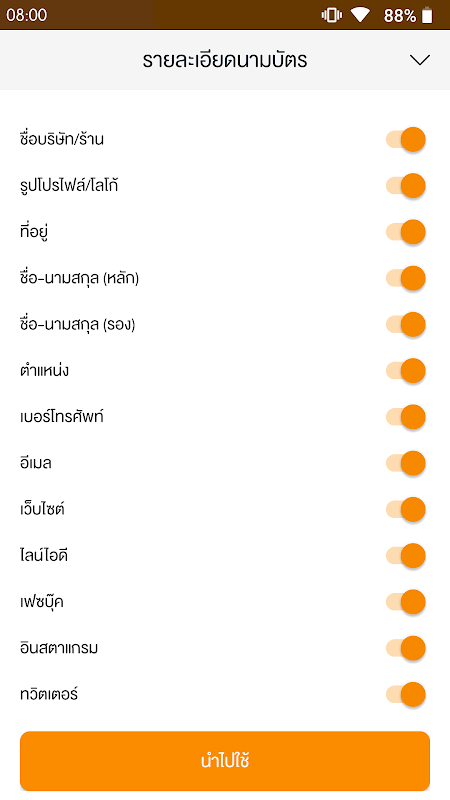 Informasi APK นามบัตร | นามบัตรเลขบัญชี