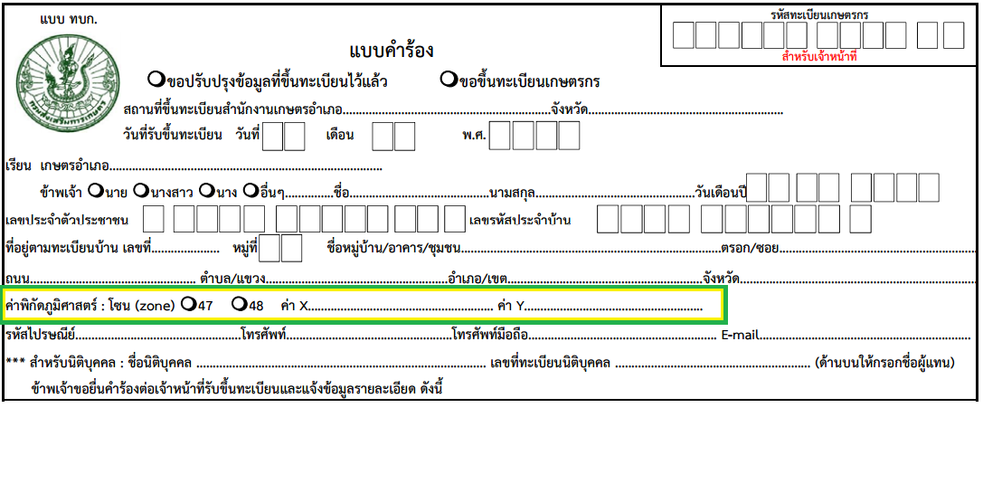 ในแต่ละปี เกษตรกรจะต้องเขียนแบบคำร้องขอขึ้นทะเบียนเกษตรกรหรือขอปรับปรุงข้อมูลทะเบียนที่ขึ้นไว้แล้ว (แบบ ทบก.)