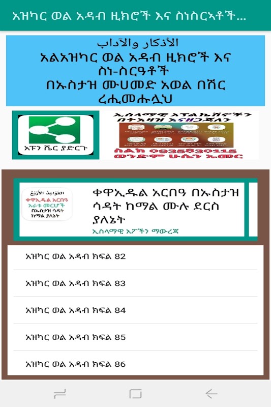 • አዝካር ወል አዳብ ዚክሮች እና ስነ ስርዓቶች በኡስታዝ ሙሐመድ አወል በሽር screenshot 3