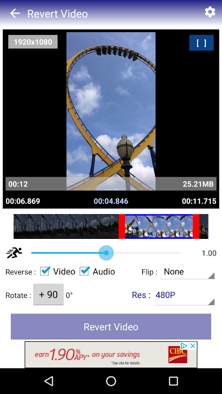 Reverse Video Magic can also modify the replay speed, and flip or rotate the video in order to make slow and fast motion videos for even more stunning effects.