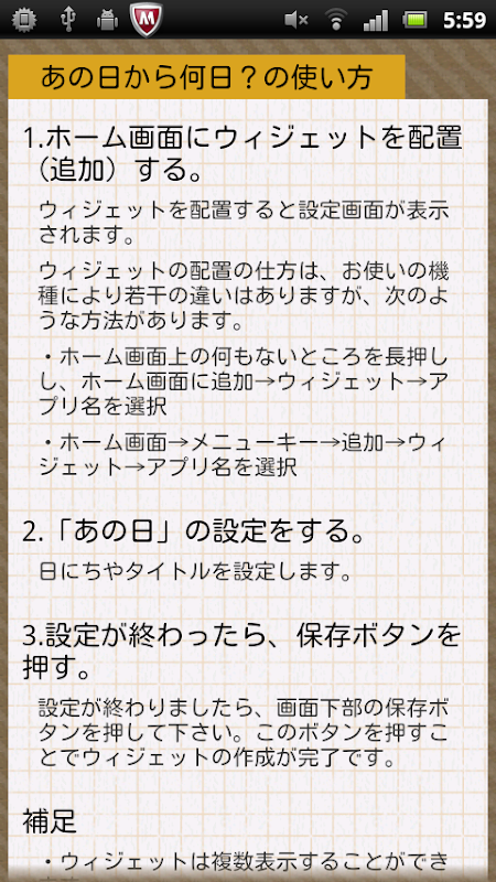 1.ホーム画面にウィジェットを配置する。