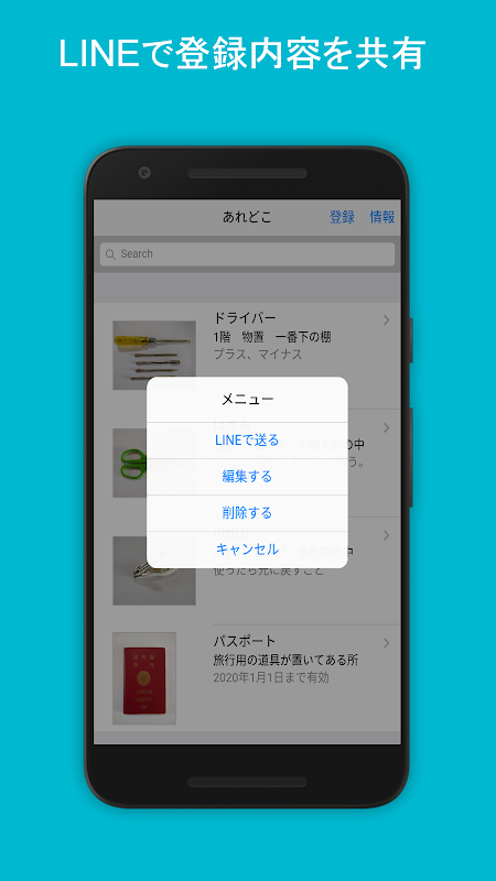 ◇◆◇家族間などでモノの置いた場所を管理・共有するアプリ◇◆◇どこに置いてあるか分からなくても「あれ?どこ置いたっけ?」と聞かなくても済む。
