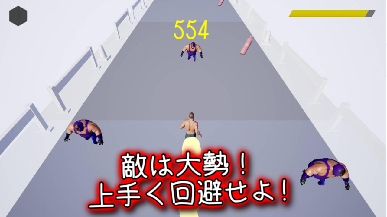 画面中央から右側タップで右に移動、左タップで左に移動。ランダムな速さで襲ってくる敵を避け、ハイスコアを目指しましょう!