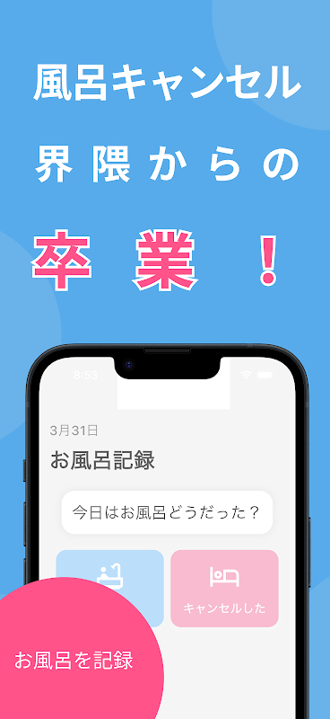 お風呂記録:お風呂キャンセル界隈を脱出・卒業するためのアプリ 1.0.8