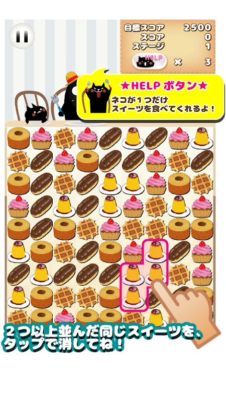 2つ以上繋がっているお菓子をタップして消していきましょう。