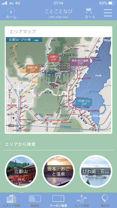 比叡山やびわ湖・大津市内の観光・周遊に便利でおトクな、MaaSアプリ「ことことなび」。
