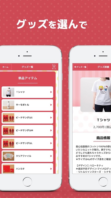 ハローキティ、マイメロディ、リトルツインスターズ、シナモロール、ポムポムプリン、ぐでたま、ザ ラナバウツの商品がつくれるよ!