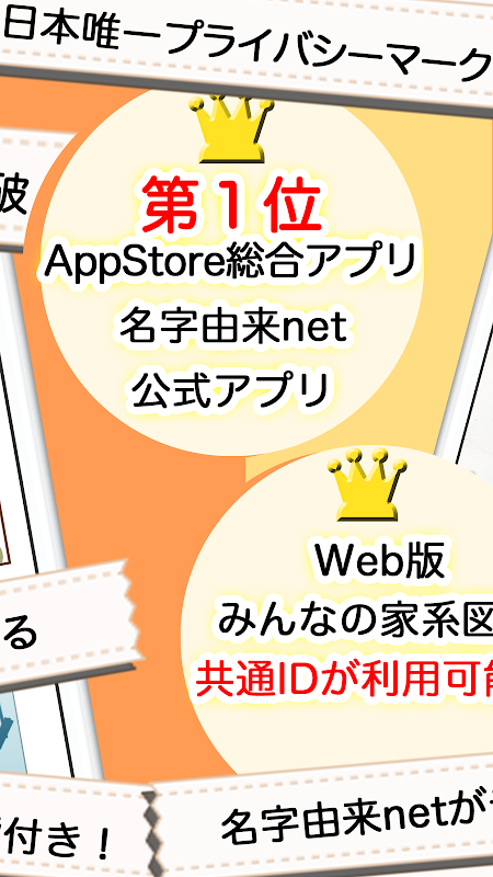 Aplikasi silsilah keluarga No. 1 yang sukses besar di Jepang dengan lebih dari 1,5 juta pengguna terdaftar. Dijalankan oleh satu-satunya perusahaan di industri silsilah keluarga yang telah memperoleh Tanda Privasi. No. 1 secara keseluruhan di App Store. Aplikasi resmi untuk nama keluarga yang berasal dari internet.