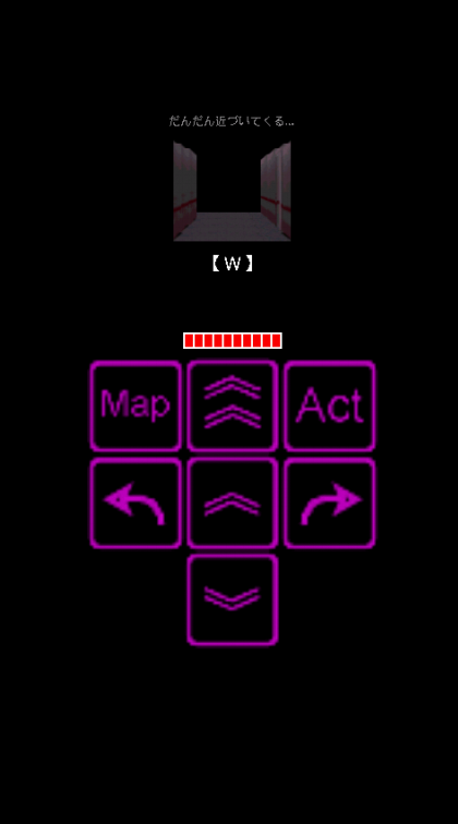 ・ゲームボタンはそれぞれ「前に走る」「前に歩く」「後ずさる」「右を向く」「左を向く」「マップを見る」「アクション」の7個あります。