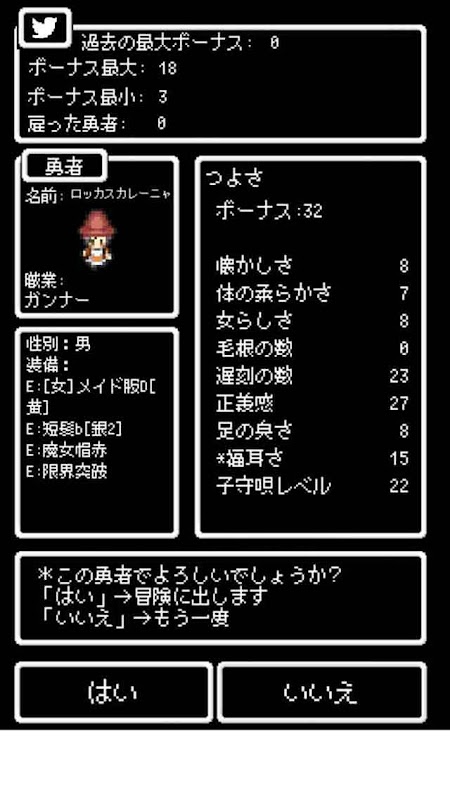■ランダムに作られる勇者で、少しだけ笑える[ 5分くらい楽しめる ]ネタゲーです!