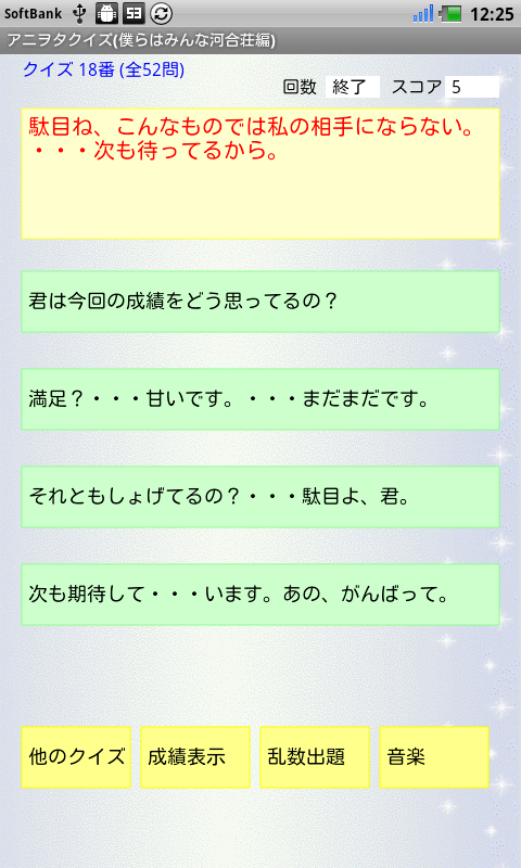 第12話「近づきたくて」からクイズ4問を追加して、合計92問にしました。