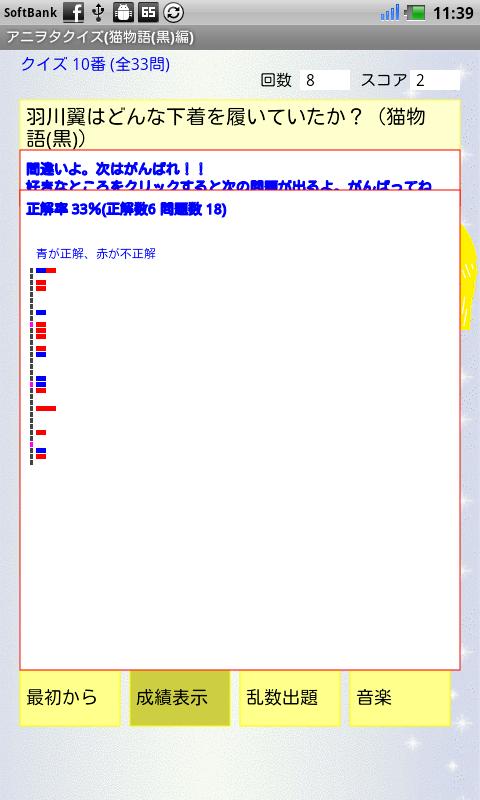クイズの成績をファイルに保存でき、各設問の正解状況を表示することもできます!
