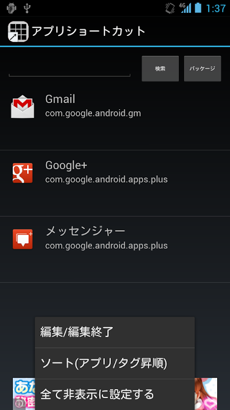 ・インストールしたアプリの検索(アプリ名、パッケージ名、付与したタグ名での検索が可能)