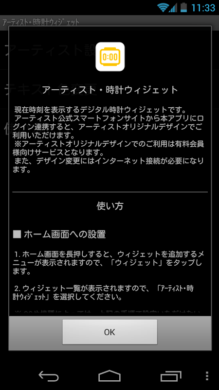 2. ウィジェット一覧が表示されますので、「アーティスト・時計ウィジェット」を選択してください。