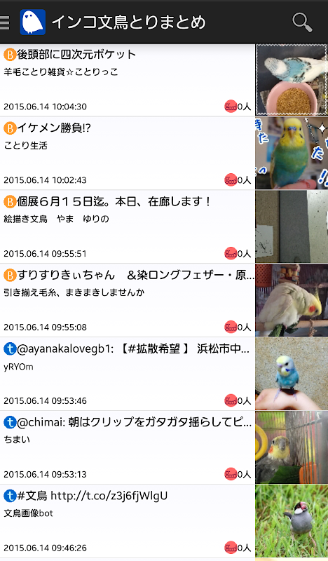 インコや文鳥の最新情報をリストアップするまとめアプリです。