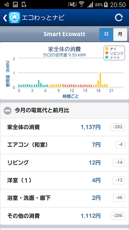 "Eco-Watto Navi" adalah aplikasi yang "memvisualisasikan" data pengukuran yang dikumpulkan oleh pengontrol HEMS "Smart Gateway" dari Enegate. Aplikasi ini adalah versi gratis.