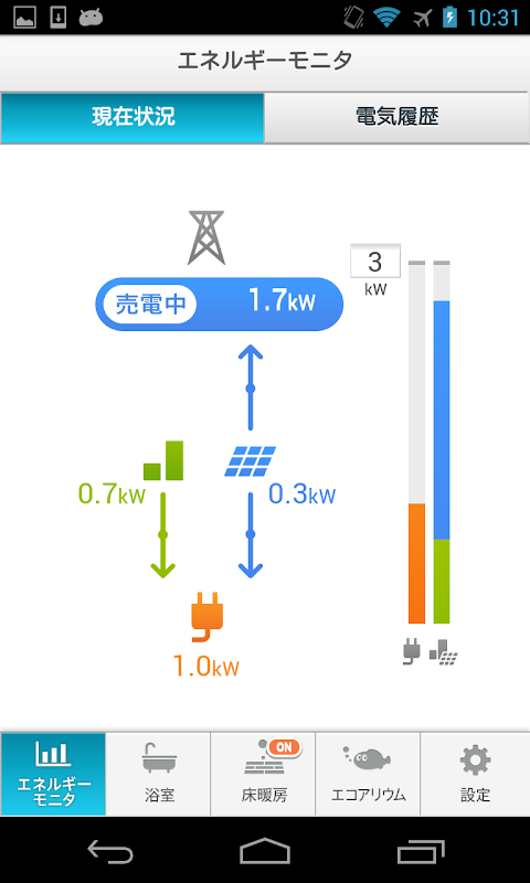 Monitor energi: Menampilkan informasi listrik real-time dan historis seperti pembangkitan dan penggunaan listrik. Anda dapat dengan mudah memeriksa energi Anda.