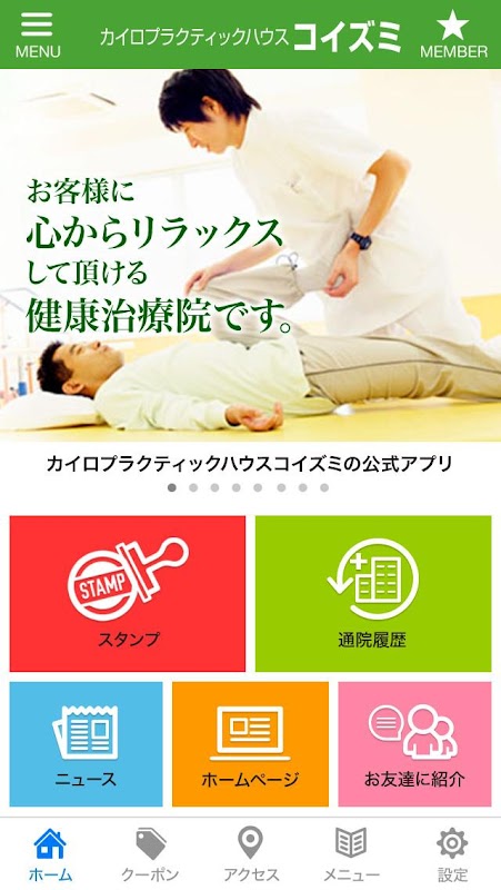 このアプリでは、カイロプラクティックハウス コイズミの色々な情報やアプリユーザー限定のお得なサービスが手に入ります!