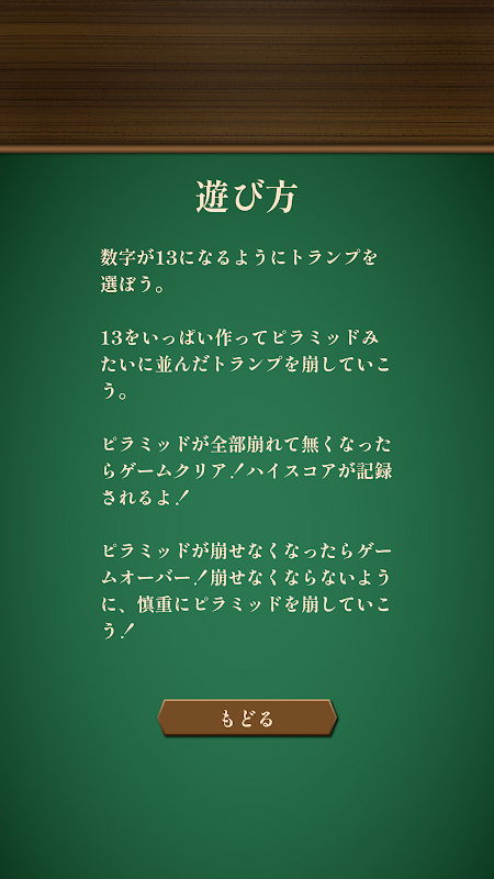 Sebuah permainan kalkulasi di mana Anda memilih satu atau dua kartu yang disusun dalam piramida dan mencoba membuat jumlah total angka yang tertulis pada kartu tersebut sama dengan 13!