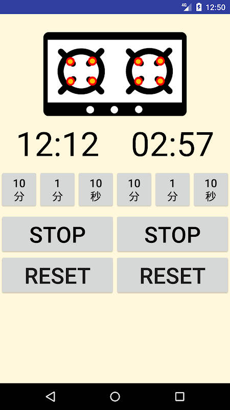 Dua burner timer dapur aplikasi untuk kompor.Tersedia dalam berbagai situasi, seperti memasak.