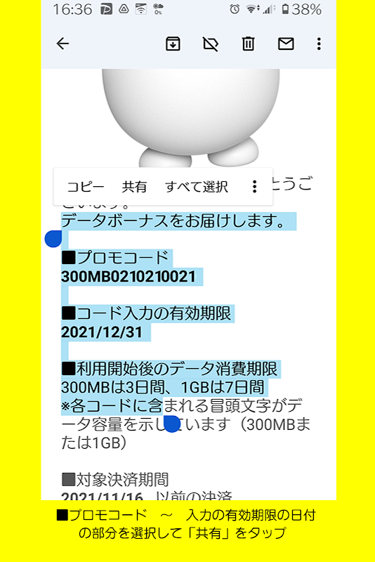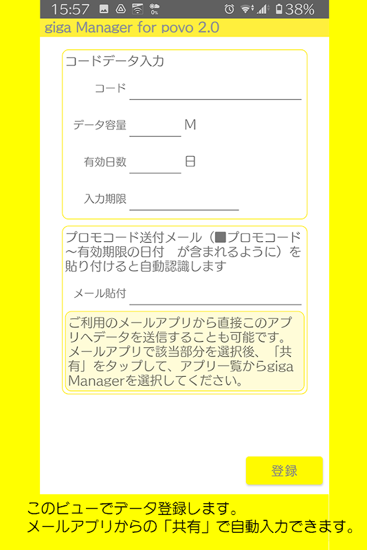 Anda juga dapat mendaftar dengan mengirimkan kode promosi yang diperoleh langsung dari aplikasi email ke aplikasi ini. Bahkan ketika mengaktifkan kode terdaftar, Anda dapat memulai aplikasi povo langsung dari aplikasi ini, sehingga tidak perlu operasi yang merepotkan.