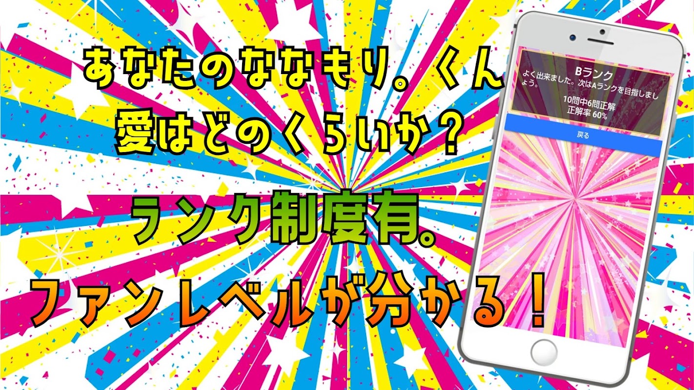 Ini adalah aplikasi kuis tentang grup populer "Nanamori.-kun" dari grup Strawberry Prince. Sebuah aplikasi kuis tidak resmi! Mari kita uji keterampilan Anda untuk melihat seberapa banyak Anda tahu "Nanamori.-kun".