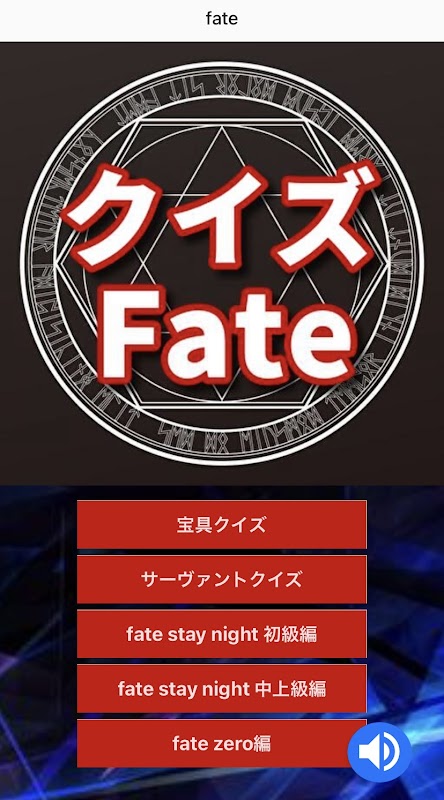 fatestay night(フェイトステイナイト)のクイズアプリです。