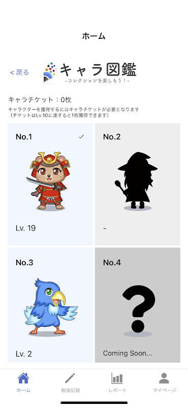 Fungsi yang menaikkan level karakter sesuai dengan jumlah belajar sehingga Anda dapat merasakan pertumbuhan Anda sendiri.
