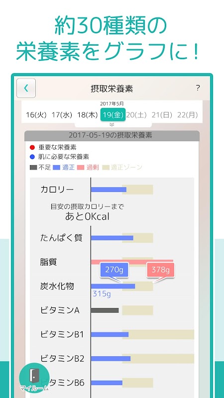 日々の栄養の過不足をグラフでチェック。
