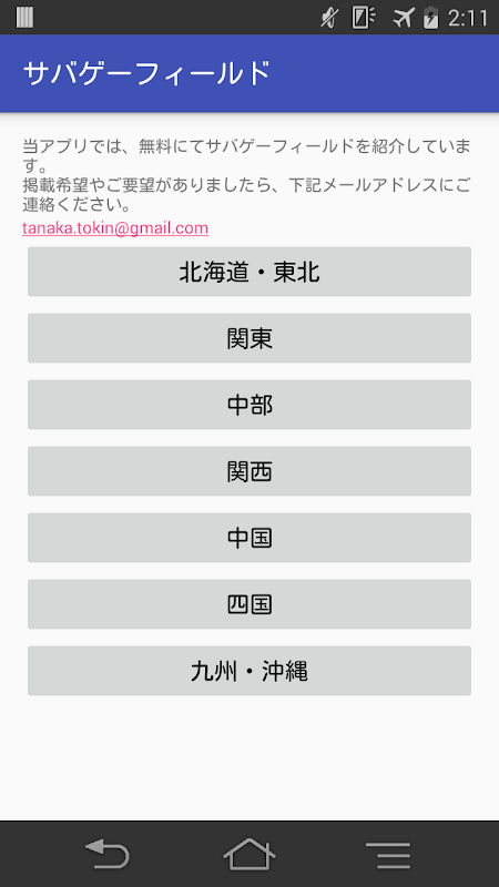 Ini adalah aplikasi yang dapat mencari Sabage (survival game) bidang seluruh negeri.nama field, Anda dapat melihat lokasi, link ke halaman rumah.