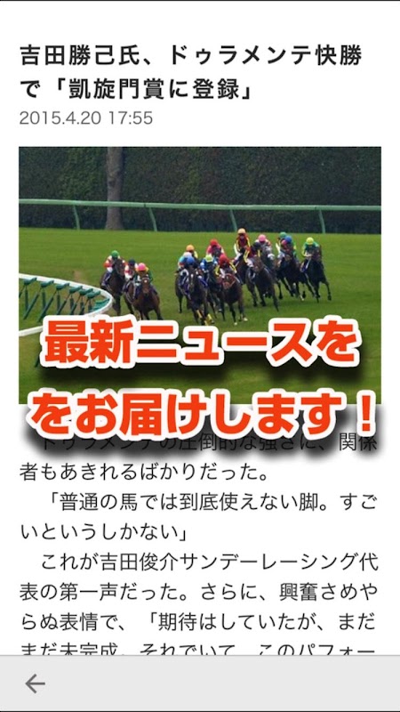 このアプリは“速報性”にも力を入れています。アプリをインストールすれば、ビッグレースの結果、最新の競馬情報をすぐにお知らせします。競馬界の今を知りたい方には必須のアイテムです。