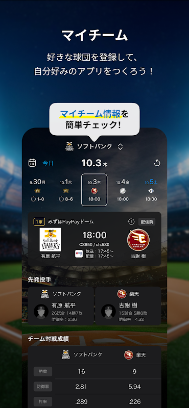 TV Sempurna SKY! Mereka yang telah berlangganan perangkat bisbol profesional dapat menonton semua pertandingan resmi 12 tim Tengah dan Pasifik di aplikasi.