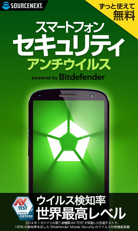 「スマートフォンセキュリティ アンチウイルス」はウイルス検出率の高さで知られる世界的なセキュリティメーカー、Bitdefender社のエンジンを利用したスマートフォン、タブレット用アプリです。