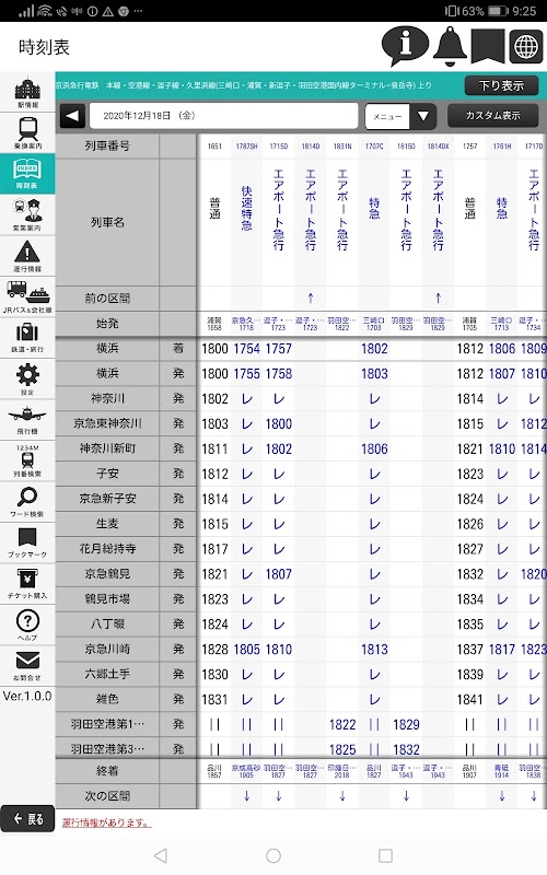 [Tampilan yang dapat disesuaikan] Waktu keberangkatan, waktu kedatangan, dan nomor dapat dialihkan antara tampilan dan non-tampilan, dan hanya item yang diperlukan yang dapat ditampilkan. Selain mempersempit tampilan menurut jenis kereta seperti "Hanya cepat", Anda juga dapat mengurutkan waktu di stasiun yang sering digunakan.