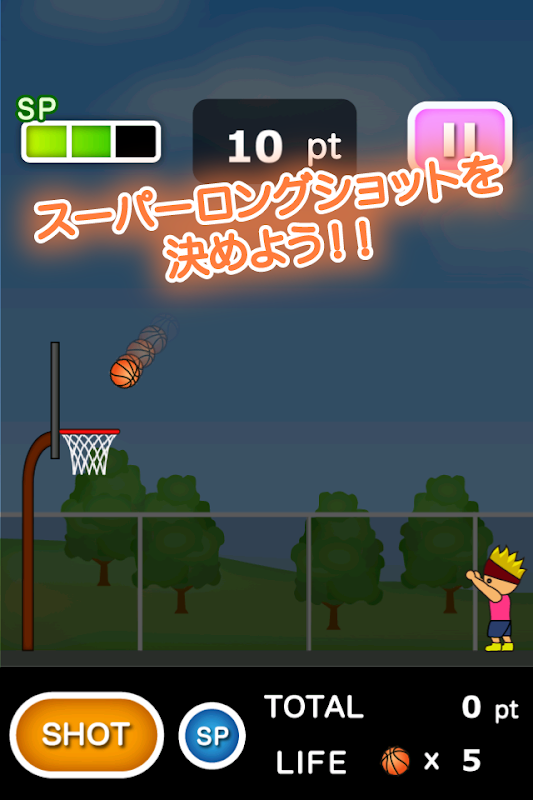 トニーくんがロングシュートを決めるバスケットアクションゲームです。