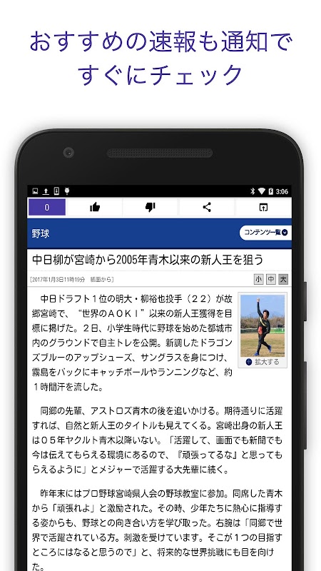 セリーグでの日程、順位、最新のプロ野球のニュースにより知りたい球団だけの情報を知ることができ、