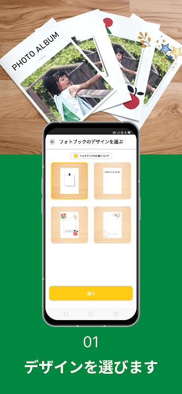 Aplikasi ini adalah aplikasi sederhana yang memungkinkan Anda membuat photobook ukuran B6 (182mm x 128mm) dengan mudah hanya dengan memilih 8 foto dan memilih desain.