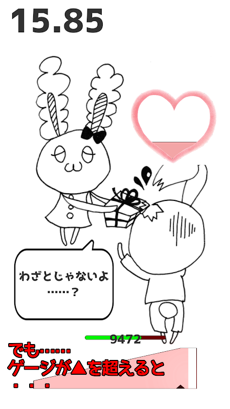 Permainan waktu super sederhana, yang Anda butuhkan hanyalah refleks. Ketuk bilah yang bergerak ke kiri dan kanan pada waktu yang tepat untuk mengumpulkan pengukur. Apakah Usako berhasil menyerahkan coklat kepada Usata?