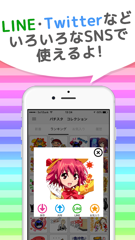 パチンコのキャラクタースタンプが無料で使い放題!パチンコファン必見のアプリです!