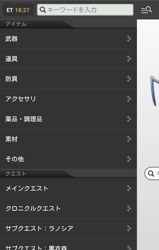 ゲーム内の知りたい情報をいつでもどこでも検索できます。